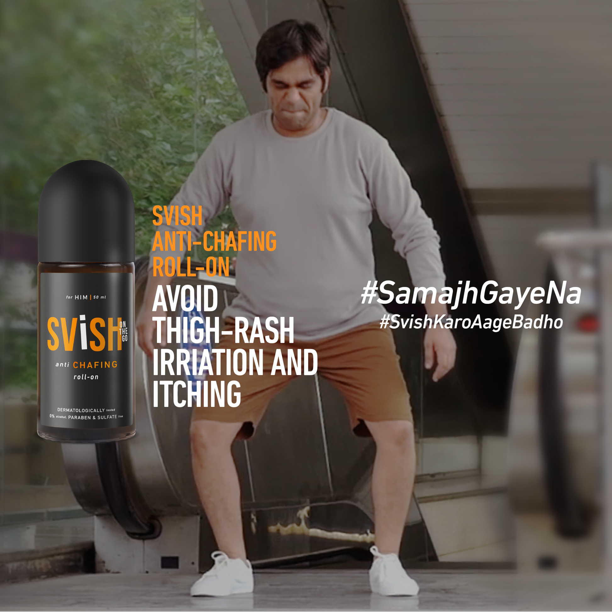 Svish Anti chafing roll on with oud fragrance, is for men who like to live life on-the-go. An itchy crotch will no longer stop you from being spontaneous. Ditch that itch; get over the odour!